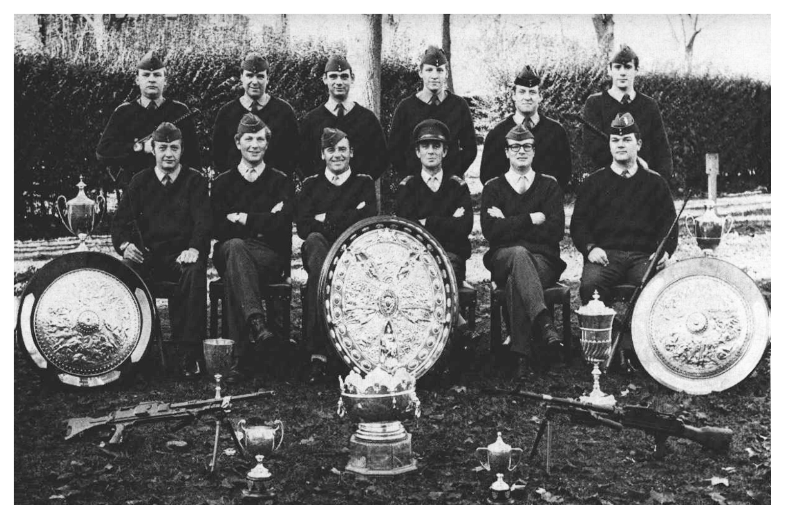 Front Row : Cpl. D. S. Ingham, 2/Lt. C. P. Ross, Capt. D. A. J. Williams, Lt: Col. T. G. Williams, M.B.E., Capt. K. M. Hodson, Sgt. J. Underwood.