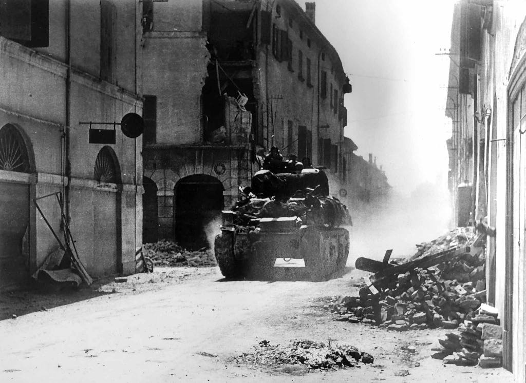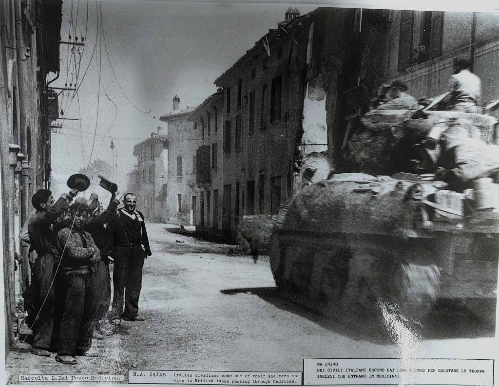 Lt. Col Tilney, commanding the 14th/20th King’s Hussars was ordered to cross the Sillaro and advance to Medicina. This began at 9:45am: an RTR Sqn crossed first, forming a protective shoulder for C Sqn. A Sqn’s Kangaroos carried a platoon of 2/6GR, and the remaining Kangaroos were escorted by B Sqn, forming the main advancing body. C Sqn’s 1st Troop was held up by self-propelled Guns just outside of Madonna del Silvaro, and so 2nd Troop took over the advance. The tank units fought against the Germans for many hours, until their eventual surrender. By 18:15, the 14th/20th King’s Hussars vanguard reached the outskirts of Medicina.