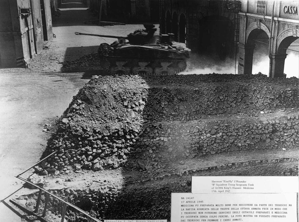 The 13th April 1945 saw the crossing of the river Santerno. By 14th April they had reached the river Sillaro, but there was the threat of a counterattack from Medicina. The Corps commander ordered Brigadier ‘Tochi’ Barker of the 43GLI to push up the road and take Speranza, Marochia, and Medicina.