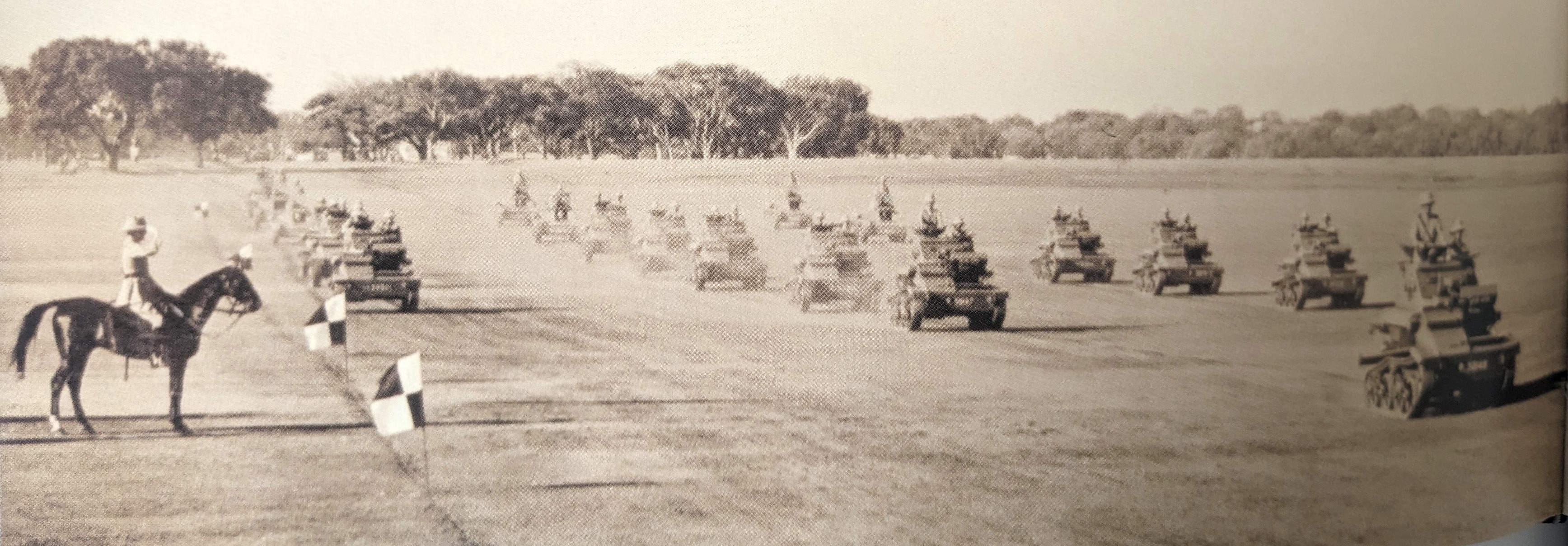 In January 1938, the 14th/20th King’s Hussars went out on manoeuvres on horseback in India for the last time and in August, the Regiment bade farewell to its horses in a mounted parade at Lucknow, India. In November the first Vickers light tanks arrived with a training team under Captain Ramsey from the Royal Tank Corps, apparently no officer spoke to him for a week!