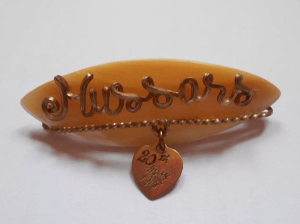 20/09/202420/09/2024 Paul W. Baker A fine mother of pearl gold colour wire 20th Hussars – May 1918 dated brooch. Found this rare item for sale on ebay. Share this: Share on Facebook (Opens in new window) Facebook Share on X (Opens in new window) X Like Loading... Related