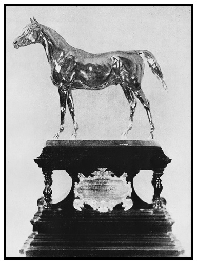 Silver statuette of Sainfoin, a chestnut colt that won the Derby in 1890. The horse was owned by Captain Sir James P. Miller, Bt, who was Adjutant of the 14th Hussars. To this day this has been the only Derby winner to have been owned by a serving officer. (Click to enlarge)