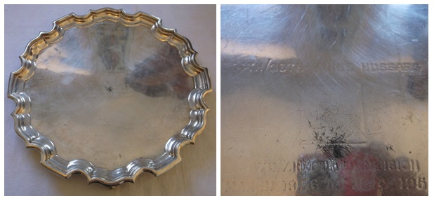Silver salver with the Regiment’s name inscribed in the centre. (Click to enlarge)