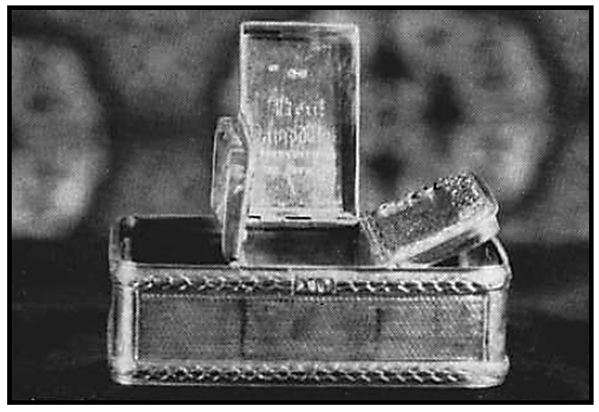 Of purely regimental interest, a silver gilt snuff box, lost by the drowning of the baggage mules in the Jhelum (2nd Sikh War 1848-1849). Many years later it was picked up by a fisherman in his nets, discovered by an officer of the Regiment and re-presented in 1912, sixty-seven years later. (Click to enlarge)