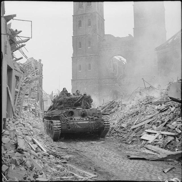 The Cromwell first saw action in the Battle of Normandy in June 1944. The tank equipped the armoured reconnaissance regiments, of the Royal Armoured Corps, within the 7th, 11th and Guards Armoured Divisions.