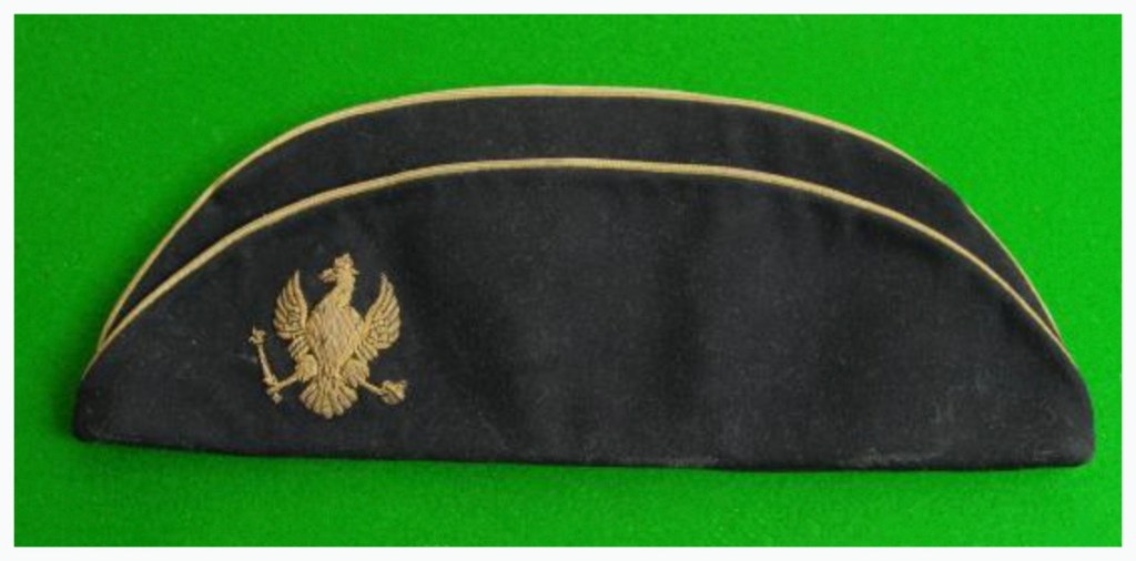 The badge here is gold with a black eagle holding gold sceptre and orb, with gold crown and trefoils on the wings in place of the usual crosses. It is 44mm high by 36 mm wide.